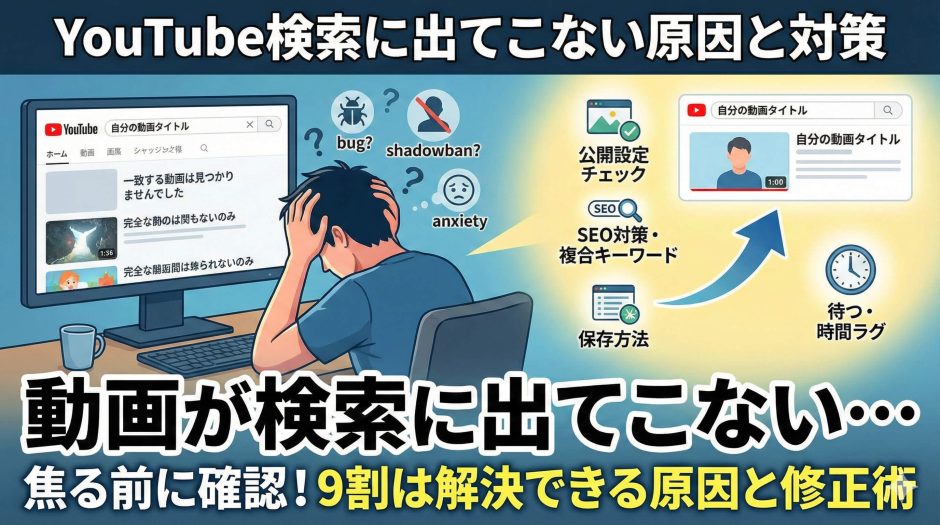 動画投稿者にとって、自分のコンテンツが検索結果に表示されないことは致命的な問題です。「もしかしてバグ?」「シャドウバンされた?」と不安になる気持ち、痛いほど分かります。